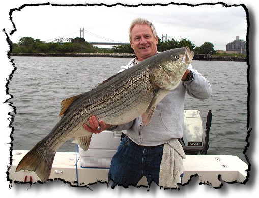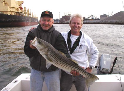 bottom in about 30 feet of water. the fish was caught on a "Charlie Rig"